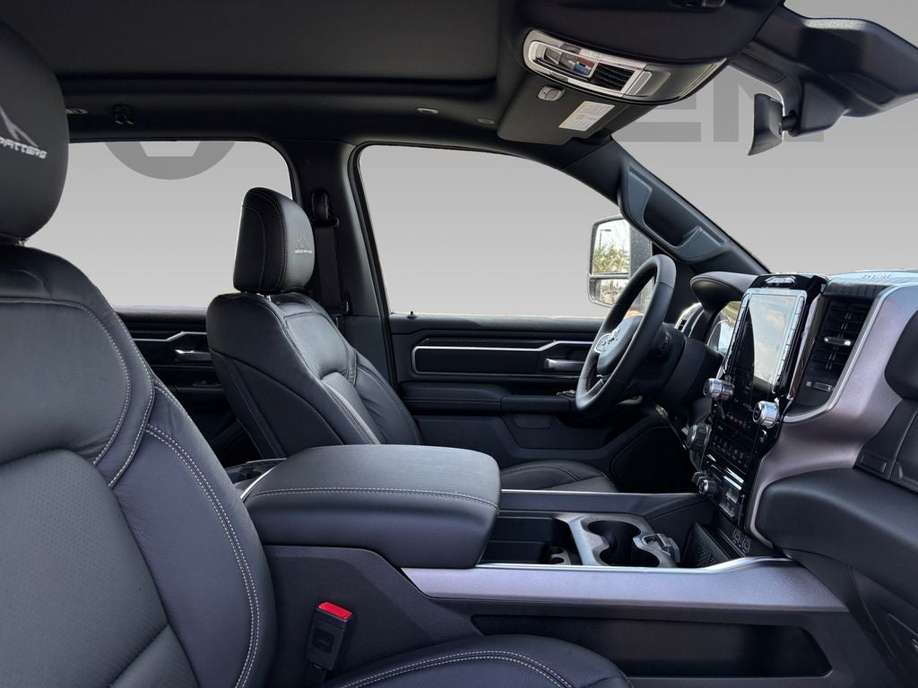 Advanced Safety Group. Quick Order Package 27Z Big Horn. Big Horn Level 2 Equipment Group: Google Android Auto; SiriusXM Radio Service; USB Host Flip; Power Adjustable Pedals; Leather Wrapped Steering Wheel; Integrated Voice Command with Bluetooth®; 12" Touchscreen Display; Glove Box Lamp; Auto Power-Folding Mirrors; 115V Auxiliary Rear Power Outlet; Media Hub with 2 Charge Only USBs; Heated Front Seats; Security Alarm; Black Premium Power Mirrors; Apple CarPlay; Premium Overhead Console; 9 Amplified Speakers with Subwoofer; Disassociated Touchscreen Display; Body Color Fender Flares; Remote Tailgate Release; 115V Auxiliary Power Outlet; LED Dome Lamp with On/off Switch; Universal Garage Door Opener; 2nd Row in Floor Storage Bins; Sun Visors with Illuminated Vanity Mirrors; LED Footwell Lighting; Rear Window Defroster; Integrated Center Stack Radio; Rear View Auto Dim Mirror; Rear Power Sliding Window; Connectivity - US/Canada; GPS Navigation; 4G LTE Wi-Fi Hot Spot; GPS Antenna Input; Overhead LED Lamps; Exterior Mirrors with Heating Element; Auto Dim Exterior Driver Mirror; SiriusXM with 360L; Global Telematics Box Module; Connected Travel and Traffic Services; Heated Steering Wheel; Black Exterior Mirrors; Configurable Drive Mode; 400W Inverter; HD Radio; Deluxe Cloth Bucket Seats; Uconnect 5 Navigation with 12.0" Display Radio; Exterior Mirrors with Supplemental Signals; Steering Wheel Mounted Audio Controls; Exterior Mirrors Courtesy Lamps; Air Conditioning ATC with Dual Zone Control; Cluster 7.0" TFT Color Display; Convex Wide-Angle Exterior Mirror Insert. Night Edition. Towing Technology Group: Trailer Hitch Line-Up Assist. Bed Utility Group: MOPAR Spray in Bedliner; MOPAR Deployable Bed Step; MOPAR 4 Adjustable Cargo Tie-Down Hooks; Pick-Up Box Lighting; Exterior 115V AC Outlet. Trailer Tow Group II: Trailer Light Check; Trailer Brake Control; Accent Color Tailgate Handle; Trailer Reverse Steering Control; Trailer Tire Pressure Monitoring System. Protection Group: Steering Gear Skid Plate; Tow Hooks; Transfer Case Skid Plate; Fuel Tank Skid Plate. Quick Order Package 23Z Big Horn. Dual-Pane Panoramic Sunroof. 9 Amplified Speakers with Subwoofer. E-Locker Rear Axle. Surround View Camera System. 33 Gallon Fuel Tank. Active Driving Assist System. Trailer Brake Control. Rear Underseat Compartment Storage. Cluster 12" TFT Color Display. Black Trailer Tow Power Mirrors. 3.92 Rear Axle Ratio. Rear Wheelhouse Liners. **Equipment listed is based on original vehicle build and subject to change. Please confirm the accuracy of the included equipment by calling the dealer prior to purchase.**