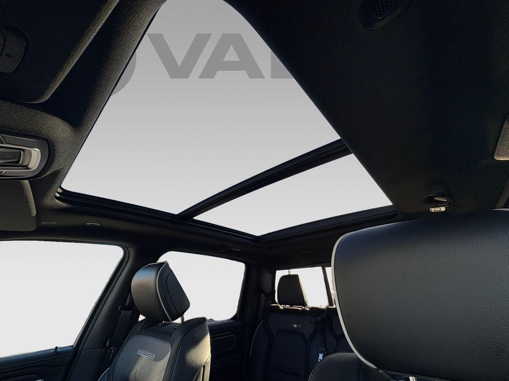 Advanced Safety Group II: Exterior Mirrors Approach Lamps; Active Driving Assist System; Surround View Camera System; Evasive Steer Assist; Drowsy Driver Detection; Intersection Collision Assist System; Traffic Sign Recognition; 12-Way/1-way Trailer Connector. Quick Order Package 21H Laramie. Laramie Level 2 Equipment Group: SiriusXM Radio Service; USB Host Flip; Rain Sensitive Windshield Wipers; 14.4" Touchscreen Display; Integrated Center Stack Radio; Front Passenger Interactive Display; Integrated Voice Command with Bluetooth®; Connectivity - US/Canada; Uconnect 5 Nav with 14.4" Display; GPS Navigation; 4G LTE Wi-Fi Hot Spot; Harman/kardon 19 Speaker Premium Sound; SiriusXM with 360L; Connected Travel and Traffic Services; Cluster 12" TFT Color Display; Power Tailgate. Night Edition: Black Headlamp Bezels; Auto Power-Folding Mirrors; 22" X 9" Forged Aluminum Wheels; Exterior Mirrors with Heating Element; Proximity Approach/departure Lamps; Auto Dim Exterior Driver Mirror; Accent Color Door Handles; Black Interior Accents; Body Color Front Bumper; Grille Surround 3 Black Texture 2 Black; Body Color Rear Bumper with Step Pads; RAM Grille Badge - Black; Black Painted Exterior Mirrors Caps; Exterior Mirrors Approach Lamps; Accent Color Premium Power Mirrors; Exterior Mirrors with Supplemental Signals; Sport Performance Hood; Exterior Mirrors Courtesy Lamps; Black Exterior Truck Badging; Accent Color Tailgate Handle; Exterior Mirrors with Memory; Dual Exhaust with Black Tips; Convex Wide-Angle Exterior Mirror Insert; Black Tail Lamp Bezels. Technology Group: Head Up Display; LED CHMSL Lamp; Digital Rearview Mirror; 12-Way/1-way Trailer Connector. Bed Utility Group: MOPAR Spray in Bedliner; MOPAR Deployable Bed Step; MOPAR 4 Adjustable Cargo Tie-Down Hooks; Exterior 115V AC Outlet. 22" X 9" Forged Aluminum Wheels. Dual-Pane Panoramic Sunroof. Power Deployable Running Boards. Ivory White Tri-Coat PC. E-Locker Rear Axle. 33 Gallon Fuel Tank. Trailer Brake Control. 3.92 Rear Axle Ratio. **Equipment listed is based on original vehicle build and subject to change. Please confirm the accuracy of the included equipment by calling the dealer prior to purchase.**