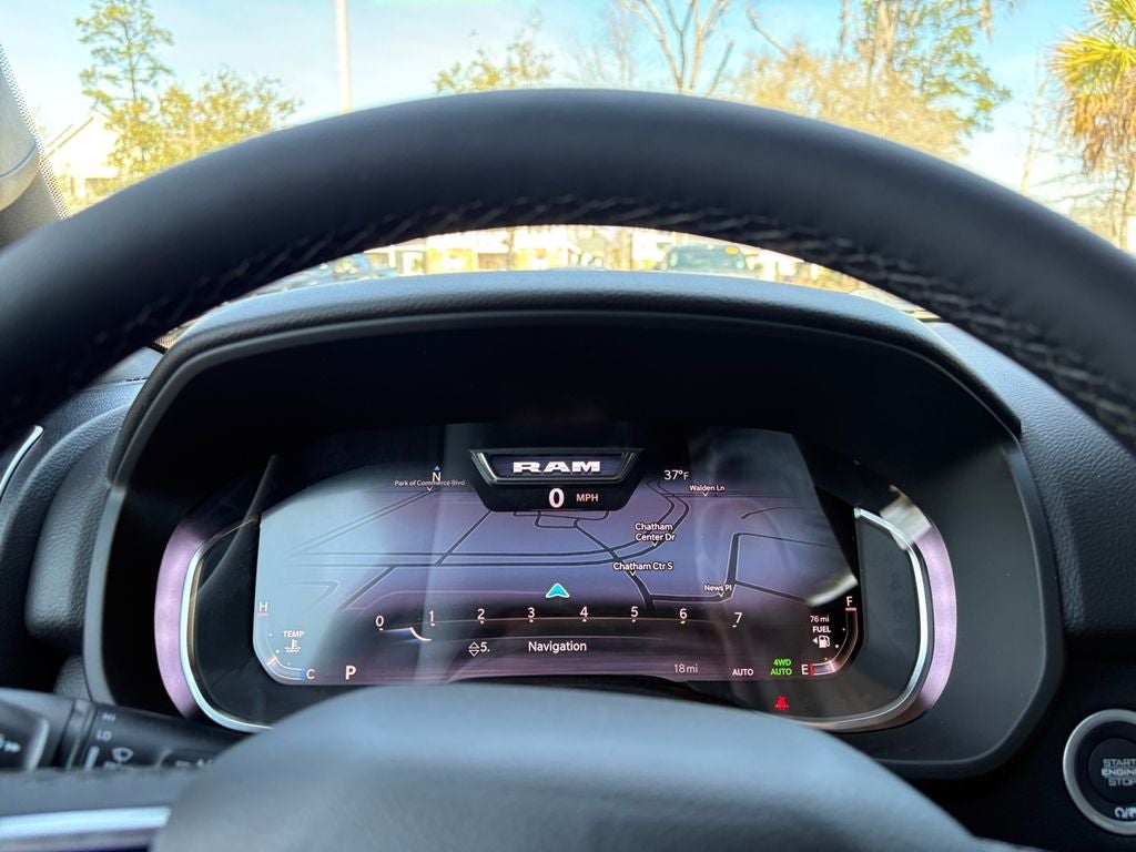 Quick Order Package 27Z Big Horn. Big Horn Level 2 Equipment Group: Google Android Auto; SiriusXM Radio Service; USB Host Flip; Power Adjustable Pedals; Leather Wrapped Steering Wheel; Integrated Voice Command with Bluetooth®; 12" Touchscreen Display; Glove Box Lamp; Auto Power-Folding Mirrors; 115V Auxiliary Rear Power Outlet; Media Hub with 2 Charge Only USBs; Heated Front Seats; Security Alarm; Black Premium Power Mirrors; Apple CarPlay; Premium Overhead Console; 9 Amplified Speakers with Subwoofer; Disassociated Touchscreen Display; Body Color Fender Flares; Remote Tailgate Release; 115V Auxiliary Power Outlet; LED Dome Lamp with On/off Switch; Universal Garage Door Opener; 2nd Row in Floor Storage Bins; Sun Visors with Illuminated Vanity Mirrors; LED Footwell Lighting; Rear Window Defroster; Integrated Center Stack Radio; Rear View Auto Dim Mirror; Rear Power Sliding Window; Connectivity - US/Canada; GPS Navigation; 4G LTE Wi-Fi Hot Spot; GPS Antenna Input; Overhead LED Lamps; Exterior Mirrors with Heating Element; Auto Dim Exterior Driver Mirror; SiriusXM with 360L; Global Telematics Box Module; Connected Travel and Traffic Services; Heated Steering Wheel; Configurable Drive Mode; 400W Inverter; HD Radio; Deluxe Cloth Bucket Seats; Uconnect 5 Navigation with 12.0" Display Radio; Exterior Mirrors with Supplemental Signals; Steering Wheel Mounted Audio Controls; Exterior Mirrors Courtesy Lamps; Air Conditioning ATC with Dual Zone Control; Cluster 7.0" TFT Color Display; Convex Wide-Angle Exterior Mirror Insert. Night Edition. Bed Utility Group: MOPAR Spray in Bedliner; MOPAR Deployable Bed Step; MOPAR 4 Adjustable Cargo Tie-Down Hooks; Pick-Up Box Lighting; Exterior 115V AC Outlet. Quick Order Package 23Z Big Horn. 9 Amplified Speakers with Subwoofer. E-Locker Rear Axle. 33 Gallon Fuel Tank. Cluster 12" TFT Color Display. 3.92 Rear Axle Ratio. **Equipment listed is based on original vehicle build and subject to change. Please confirm the accuracy of the included equipment by calling the dealer prior to purchase.**