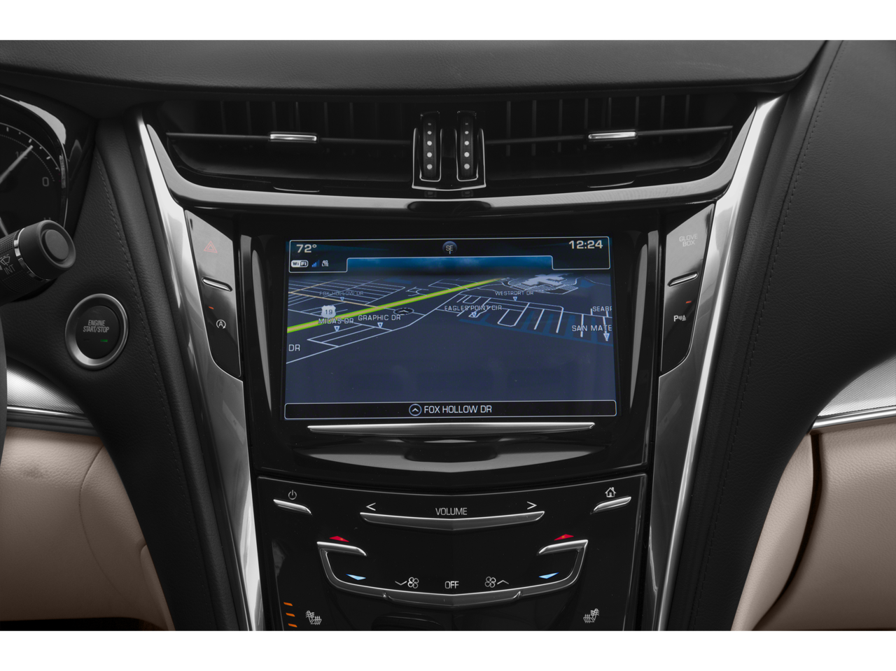 - Cadillac user experience with embedded navigation AM/FM stereo with connected navigation providing real-time traffic, 8" diagonal color information display, two USB ports, personalized profiles for each driver's settings, Natural Voice Recognition, Phone Integration for Apple CarPlay and Android Auto capability for compatible phone, Connected Apps and Teen Driver