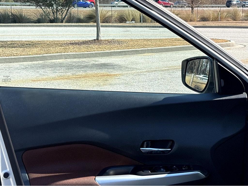 Vaden is pleased to offer this Brilliant Silver Metallic 2020 Nissan Kicks SR with Charcoal Cloth... Beautifully equipped with 17" Alloy Wheels, 3.927 Axle Ratio, 6 Speakers, ABS brakes, Air Conditioning, Alloy wheels, AM/FM radio: SiriusXM, Auto High-beam Headlights, Automatic temperature control, Blind Spot Warning, Brake assist, Bumpers: body-color, Carpeted Floor Mats w/Cargo Mat, Center Armrest w/Storage, Cloth Seat Trim, Compass, Delay-off headlights, Driver door bin, Driver vanity mirror, Driver's Seat Mounted Armrest, Dual front impact airbags, Dual front side impact airbags, Electronic Stability Control, Exterior Parking Camera Rear, Front anti-roll bar, Front Bucket Seats, Front fog lights, Front reading lights, Front wheel independent suspension, Fully automatic headlights, Heated door mirrors, Illuminated entry, Knee airbag, Leather Shift Knob, Low tire pressure warning, NissanConnect featuring Apple CarPlay and Android Auto, Occupant sensing airbag, Outside temperature display, Overhead airbag, Panic alarm, Passenger door bin, Passenger vanity mirror, Power door mirrors, Power steering, Power windows, Radio data system, Radio: AM/FM Audio System, Rear Parking Sensors, Rear reading lights, Rear Roof Spoiler, Rear side impact airbag, Rear window defroster, Rear window wiper, Remote keyless entry, Roof rack: rails only, Speed control, Splash Guards Grain (4 Piece), Split folding rear seat, Spoiler, Sport steering wheel, Steering wheel mounted audio controls, Tachometer, Telescoping steering wheel, Tilt steering wheel, Traction control, Trip computer, Turn signal indicator mirrors, Variably intermittent wipers, and Wheels: 17" Black Alloy! APPLE CAR PLAY - ANDROID CAR, Bluetooth®, NAVIGATION SYSTEM NAV GPS, BACKUP CAMERA, SOUND PACKAGE - SIRIUS XM SATELLITE RADIO, LEATHER SEATS, POWER PACKAGE, CLIMATE PACKAGE, POWER MIRROR PACKAGE, CLEAN CARFAX.