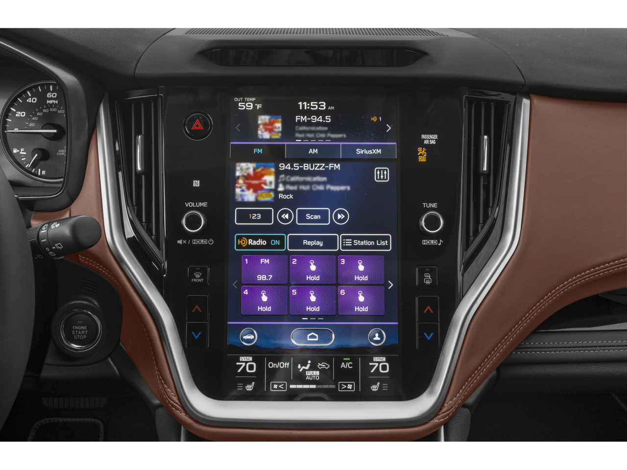 - Radio: Subaru STARLINK 11.6" Multimedia Nav System -inc: AM/FM stereo, HD Radio, voice activated controls and navigation, Bluetooth® audio streaming and hands-free phone connectivity w/SMS text messaging (applicable w/compatible cellphone), Near Field Communication (NFC), iPod control capability, SiriusXM All Access radio (subscription required), SiriusXM Traffic (subscription required), SiriusXM Travel Link (subscription required), smartphone integration: Android Auto, CarPlay and STARLINK cloud applications, 3.5mm auxiliary input jack and dual USB input ports