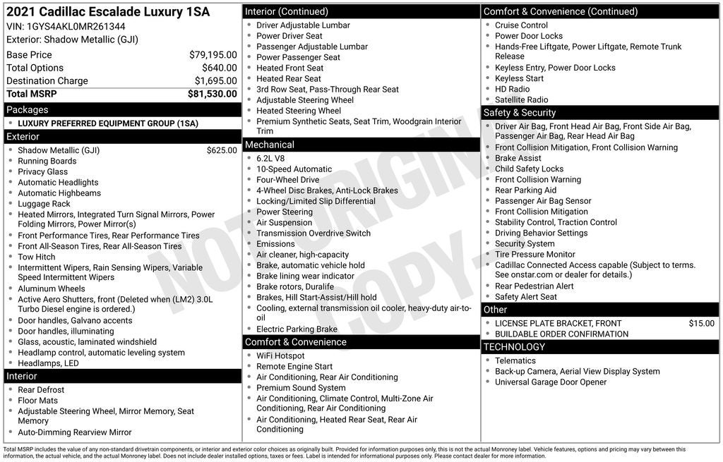 - Vehicle Name: Cadillac Escalade