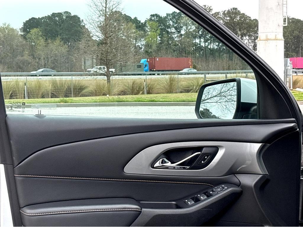 Vaden is pleased to offer this Silver Ice Metallic 2021 Chevrolet Traverse LT Leather with Black Leather... Beautifully equipped with Floor Liner Package (LPO) (1st & 2nd Row All-Weather Floor Liner (LPO), 3rd Row All-Weather Floor Liner (LPO), and Integrated Cargo Liner (LPO)), Preferred Equipment Group 3LT, 3.49 Axle Ratio, 3rd row seats: split-bench, 4-Wheel Disc Brakes, 6 Speakers, 7-Passenger Seating (2-2-3 Seating Configuration), ABS brakes, Air Conditioning, Alloy wheels, AM/FM radio: SiriusXM with 360L, Apple CarPlay/Android Auto, Automatic temperature control, Brake assist, Bumpers: body-color, Compass, Delay-off headlights, Driver door bin, Driver vanity mirror, Dual front impact airbags, Dual front side impact airbags, Electronic Stability Control, Emergency communication system: OnStar and Chevrolet connected services capable, Four wheel independent suspension, Front anti-roll bar, Front Bucket Seats, Front Center Armrest, Front dual zone A/C, Front fog lights, Front reading lights, Fully automatic headlights, Garage door transmitter, Heated door mirrors, Heated front seats, High-Intensity Discharge Headlights, Illuminated entry, Leather steering wheel, Leather-Appointed Seat Trim, Low tire pressure warning, Occupant sensing airbag, Outside temperature display, Overhead airbag, Overhead console, Panic alarm, Passenger door bin, Passenger vanity mirror, Power door mirrors, Power driver seat, Power Liftgate, Power passenger seat, Power steering, Power windows, Premium audio system: Chevrolet MyLink, Radio data system, Radio: Chevrolet Infotainment 3 Plus System, Rear air conditioning, Rear anti-roll bar, Rear reading lights, Rear window defroster, Rear window wiper, Remote keyless entry, Roof rack: rails only, Security system, SiriusXM w/360L, Speed control, Speed-sensing steering, Spoiler, Steering wheel mounted audio controls, Tachometer, Telescoping steering wheel, Tilt steering wheel, Traction control, Trip computer, Turn signal indicator mirrors, Variably intermittent wipers, Voltmeter, and Wheels: 18" Bright Silver Painted Aluminum!