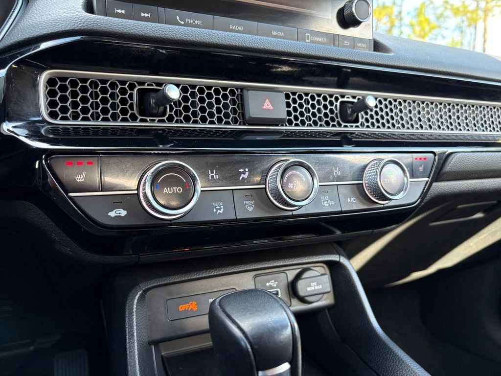 The leather seats in it are a must for buyers looking for comfort, durability, and style. See what's behind you with the back up camera on the Honda Civic. Start it from inside with remote start. This 2023 Honda Civic has auto-adjust speed for safe following. It features a hands-free Bluetooth® phone system. This vehicle offers Android Auto for seamless smartphone integration. The vehicle offers Automatic Climate Control for personalized comfort. The Honda Civic's Forward Collision Warning system alerts the driver to potential front-end collisions, enhancing safety. This vehicle offers Apple CarPlay for seamless connectivity. The vehicle is front wheel drive. This model projects refinement with a racy metallic gray exterior. This vehicle has a 4 Cyl, 1.5L high output engine. Set the temperature exactly where you are most comfortable in the vehicle. The fan speed and temperature will automatically adjust to maintain your preferred zone climate. This 2023 Honda Civic is equipped with a gasoline engine.