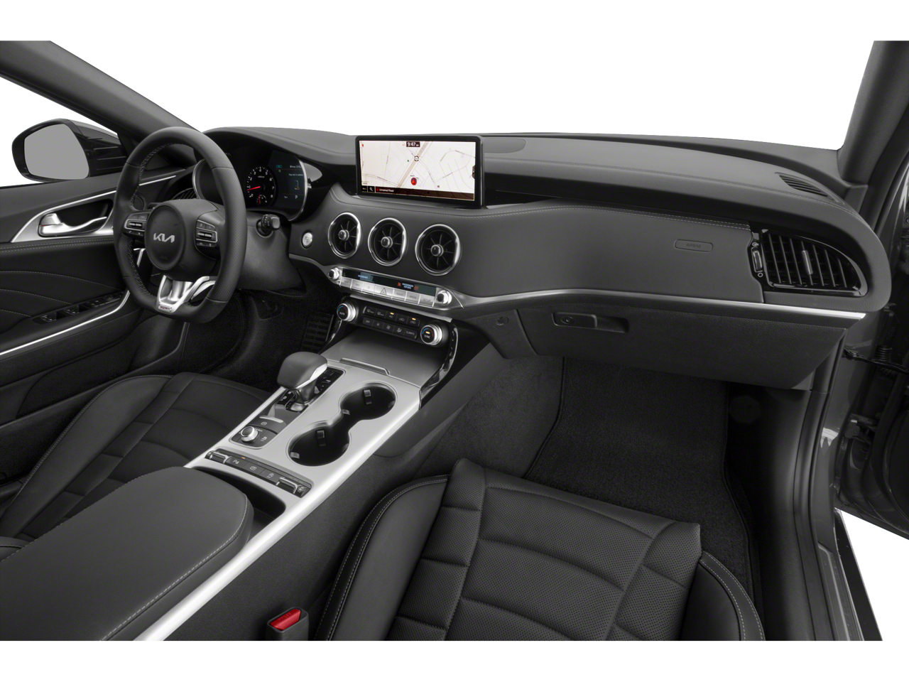 Inside, enjoy premium amenities including heated and ventilated leather seats, a driver-focused cockpit, and a high-resolution infotainment system with smartphone integration. The GT2 package elevates convenience and safety with features like a premium audio system, advanced driver-assist technologies, and comprehensive comfort options to make every journey enjoyable. Exterior details such as bold lines, aerodynamic contours, and performance wheels underscore the Kia Stinger's track-inspired heritage while remaining perfectly suited for daily driving.