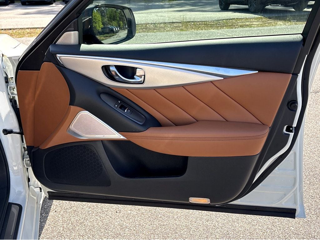 Vaden is pleased to offer 2024 INFINITI Q50 LUXE in Majestic White, Beautifully equipped with all the essentials and then some! Cargo Package (Cargo Net, First Aid Kit, Shopping Bag Hooks, and Trunk Mat), INFINITI Certified Pre-Owned Certified, Active Cruise Control, Auto High-beam Headlights, Blind Spot Warning, Exterior Parking Camera Rear, Front dual zone A/C, Heated Front Bucket Seats, Power moonroof, Rain sensing wipers, 16 Speakers, 18 x 7.5 Aluminum Alloy Wheels, 4-Wheel Disc Brakes, ABS brakes, Air Conditioning, Alloy wheels, AM/FM radio: SiriusXM, Auto tilt-away steering wheel, Auto-dimming Rear-View mirror, Automatic temperature control, Brake assist, Bumpers: body-color, CD player, Compass, Delay-off headlights, Driver door bin, Driver vanity mirror, Dual front impact airbags, Dual front side impact airbags, Electronic Stability Control, Emergency communication system: INFINITI Connection, Four wheel independent suspension, Front anti-roll bar, Front Bucket Seats, Front Center Armrest, Front fog lights, Front reading lights, Fully automatic headlights, Garage door transmitter: HomeLink, Heated door mirrors, Heated front seats, Heated steering wheel, Illuminated entry, Leather Shift Knob, Leather steering wheel, Leather-Appointed Seating Surfaces, Literature Kit, Low tire pressure warning, Memory seat, Occupant sensing airbag, Outside temperature display, Overhead airbag, Overhead console, Panic alarm, Passenger door bin, Passenger vanity mirror, Power door mirrors, Power driver seat, Power passenger seat, Power steering, Power windows, Radio data system, Radio: INFINITI InTouch Dual HD Display System, Rear anti-roll bar, Rear reading lights, Rear seat center armrest, Rear USB/Power Delivery Port, Rear window defroster, Remote keyless entry, Saddle Brown Interior, Security system, Speed control, Speed-Sensitive Wipers, Splash Guards, Split folding rear seat, Steering wheel memory, Steering wheel mounted audio controls, Tachometer, Telescoping steering wheel, Tilt steering wheel, Traction control, Trip computer, Turn signal indicator mirrors, and Variably intermittent wipers. REMAINDER OF FACTORY WARRANTY, ONE OWNER, CLEAN CARFAX HISTORY, Bluetooth®, BACKUP CAMERA, NAVIGATION SYSTEM NAV GPS, SUNROOF / MOONROOF, Active Cruise Control, Auto High-beam Headlights, Blind Spot Warning, Exterior Parking Camera Rear, Front dual zone A/C, Heated Front Bucket Seats, Power moonroof, Rain sensing wipers.