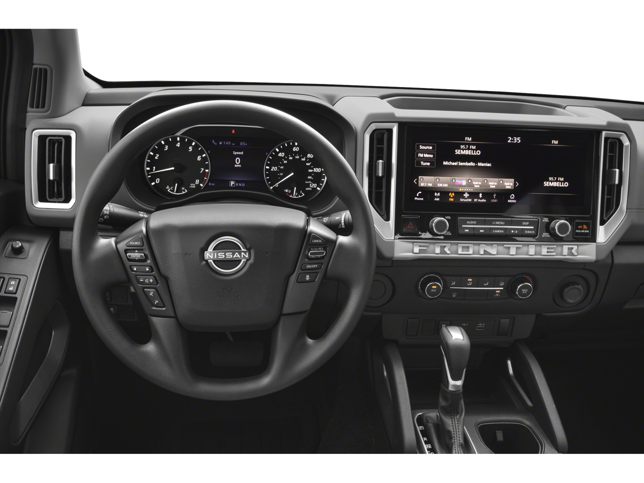 Vaden is pleased to offer this Super Black 2025 Nissan Frontier SV with Charcoal Cloth... Beautifully equipped with SV Convenience Package (120V Power Outlet in Bed, 120V Power Outlet in Rear Center Console, Bed Under-Rail Lighting, Front Halogen Fog Lights, Heated Front Seats, Heated Leather Steering Wheel, Heated Outside Mirrors, HVAC - Dual-Zone Front Auto A/C, I-Key w/Request Switches on O/S Handles, Illuminated Locking Glove Box w/Damper, Leather Shift Lever, Remote Engine Starter, Spray-In Bedliner, Tow/Haul Mode Switch, Trailer Hitch w/Wiring Harness, and Utili-Track System), Telematics Delete Package (NissanConnect Services & Wi-Fi Hotspot Delete), Tow Package (T11) (DISC), 17" Alloy Wheels, 3.692 Axle Ratio, 4-Wheel Disc Brakes, 6 Speakers, ABS brakes, Air Conditioning, Alloy wheels, AM/FM radio: SiriusXM, Anti-whiplash front head restraints, Auto High-beam Headlights, Blind Spot Warning, Brake assist, Bumpers: body-color, Carpeted Floor Mats, Delay-off headlights, Driver door bin, Driver vanity mirror, Dual front impact airbags, Dual front side impact airbags, Electronic Stability Control, Electronic Tailgate Lock, Emergency communication system, Front anti-roll bar, Front Bucket Seats, Front Center Armrest, Front reading lights, Front wheel independent suspension, Fully automatic headlights, Illuminated entry, Knee airbag, Low tire pressure warning, Occupant sensing airbag, Overhead airbag, Overhead console, Panic alarm, Passenger door bin, Passenger vanity mirror, Power door mirrors, Power driver seat, Power steering, Power windows, Premium Cloth Seat Trim, Radio data system, Radio: SXM/AM/FM/AUX/USB Audio System, Rear anti-roll bar, Rear seat center armrest, Rear side impact airbag, Rear step bumper, Remote keyless entry, Security system, Speed control, Speed-sensing steering, Split folding rear seat, Steering wheel mounted audio controls, Tachometer, Telescoping steering wheel, Tilt steering wheel, Traction control, Trip computer, Variably intermittent wipers, Voltmeter, and Wireless Apple CarPlay/Wireless Android Auto! REMAINDER OF FACTORY WARRANTY, ONE OWNER, PUSH BUTTON STARTER, REMOTE KEYLESS ENTRY, Bluetooth®, BACKUP CAMERA, POWER MIRROR PACKAGE, PREMIUM WHEELS, 120V Power Outlet in Bed, 120V Power Outlet in Rear Center Console, Bed Under-Rail Lighting, Front Halogen Fog Lights, Heated Front Seats, Heated Leather Steering Wheel, Heated Outside Mirrors, HVAC - Dual-Zone Front Auto A/C, I-Key w/Request Switches on O/S Handles, Illuminated Locking Glove Box w/Damper, Leather Shift Lever, NissanConnect Services & Wi-Fi Hotspot Delete, Remote Engine Starter, Spray-In Bedliner, SV Convenience Package, Telematics Delete Package, Tow Package (T11) (DISC), Tow/Haul Mode Switch, Trailer Hitch w/Wiring Harness, Utili-Track System.